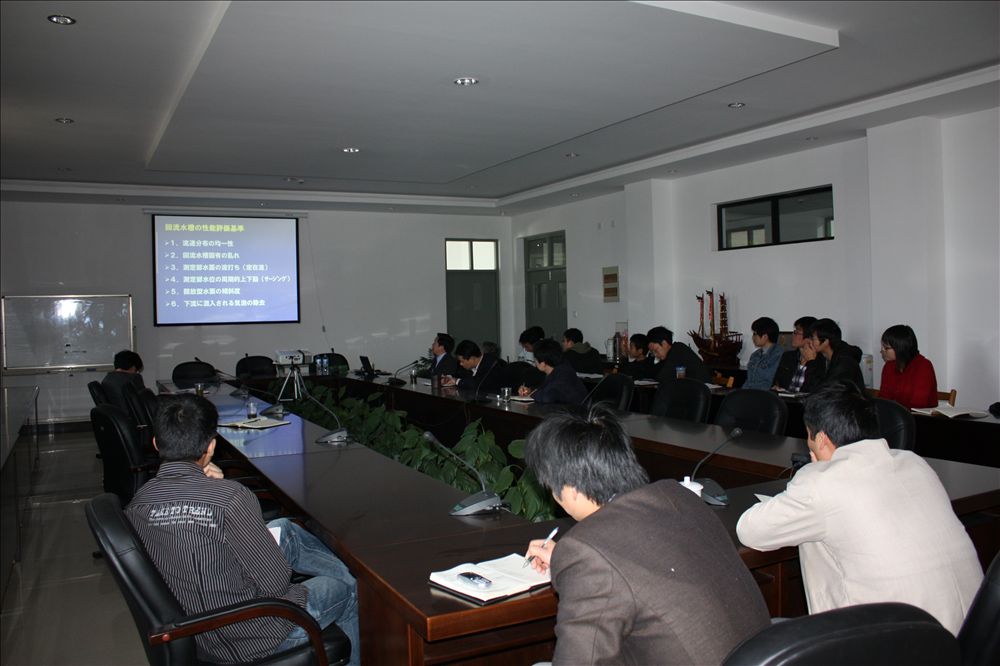 此外,应学院邀请,胡教授通过多年以来在水槽建设和使用等方面的积累和经验,为海洋渔业系及其他相关教师做了题为“动水槽的基本性能及在水产海洋研究领域中的利用”的报告,给我院建设循环水槽提供了宝贵的资料,并为水槽建设提出了诸多有意的建议和意见。