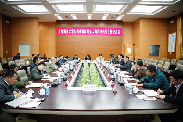 4月20日下午,上海海洋大学和国家海洋局第二海洋研究所合作交流会,在我校图文信息中心102会议室隆重召开。中国工程院金翔龙院士,国家海洋局第二研究所李家彪副所长、初凤友研究员、陶春辉研究员、吴自银研究员,海军海洋测绘研究所翟京生所长,上海海洋大学潘迎捷校长、校长助理吴建农教授、校办主任张敏教授、人事处郑卫东处长、科技处李柏林处长、财务处杨昕处长、后勤管理处俞渊处长、研究生部唐建业副主任,海洋科学学院许柳雄院长、许四杰书记、杨红副院长、陈新军副院长、崔维成教授、邱振戈教授、韩震教授、沈蔚副教授、郭立新副教授等出席了本次交流会。