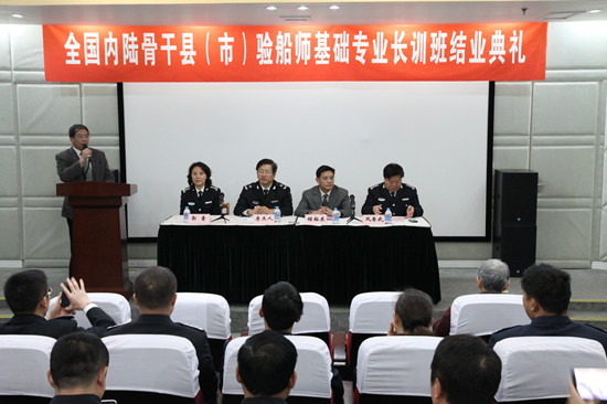2014年1月9日下午第二期全国内陆骨干县(市)验船师基础专业长训班结业典礼在上海海洋大学图文信息中心406会议室顺利举行。农业部渔业船舶检验局李杰人局长和上海海洋大学程裕东校长出席了本次典礼,并为学员颁发结业证书。