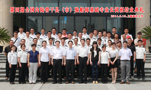 2014年6月13日上午,第四期全国内陆骨干县(市)验船师基础专业长训班结业典礼在上海海洋大学顺利举行。农业部渔业船舶检验局沈建荣副局长、郭音副处长,上海渔业船舶检验局周全局长,上海海洋大学封金章副校长等、第四期全国内陆骨干县(市)验船师基础专业长训班的部分教师代表和39名全体学员参加了典礼仪式。