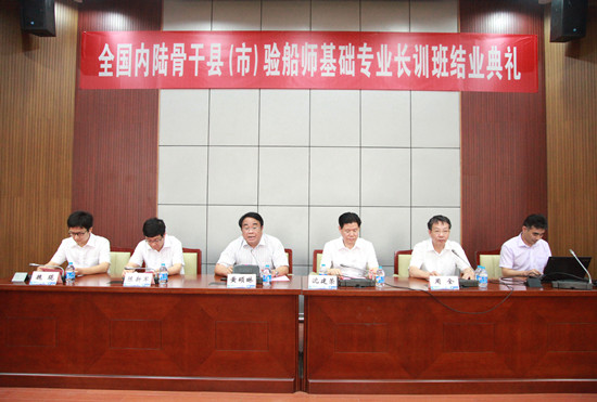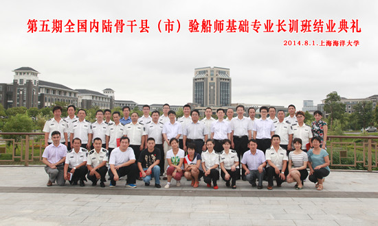 2014年8月1日上午,第五期全国内陆骨干县(市)验船师基础专业长训班结业典礼在上海海洋大学行政楼137会议室顺利举行。农业部渔业船舶检验局沈建荣副局长、体系建设处魏琨主任,上海渔业船舶检验局周全局长,上海海洋大学黄硕琳副校长、海洋科学学院陈新军院长等领导出席了结业典礼仪式,第五期全国内陆骨干县(市)验船师基础专业长训班的部分教师代表和38名全体学员参加了典礼仪式。沈建荣副局长和黄硕琳校长为培训班优秀班干部和优秀学员颁发了荣誉证书。典礼仪式由国家渔业船舶验船师培训基地负责人沙锋主持。