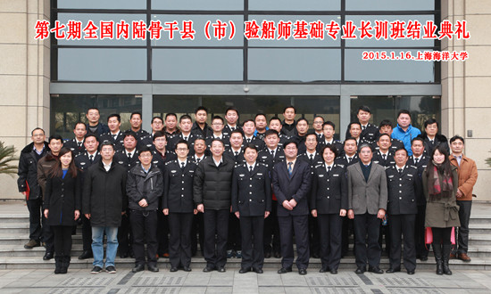 2015年1月16上午,第七期全国内陆骨干县(市)验船师基础专业长训班结业典礼在上海海洋大学行政楼137会议室顺利举行。农业部渔业船舶检验局张锋副局长和上海海洋大学吴建农副校长出席了本次典礼,并为学员颁发结业证书和荣誉证书。