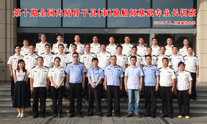 2015年6月30日下午,在上海海洋大学行政楼前举行了第十期全国内陆骨干县(市)验船师培训班集训会操检阅仪式,仪式后在行政楼137会议室举行了开班典礼。上海海洋大学海洋科学学院院长陈新军教授、洋山出入境边防检查站三队队长朱军警官出席了开班典礼,会议由培训基地负责人沙锋老师主持。