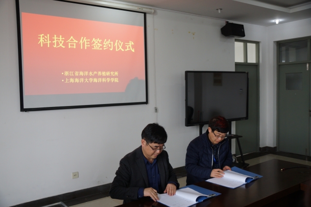 2017年1月4日下午,浙江省海洋水产养殖研究所与上海海洋大学海洋科学学院科技合作签约仪式在海洋学院323会议室举行。浙江省海洋水产养殖研究所党委书记柴雪良与海洋科学学院院长陈新军分别代表双方签署合作协议。浙江省海洋水产养殖研究所陈少波研究员、仇建标高工、彭欣副研究员、余海滨副研究员、海洋科学学院渔业资源系主任戴小杰教授、中国远洋渔业数据中心执行副主任田思泉副教授、学院相关教师和工作人员参加了本次签约仪式。签约仪式由田思泉副教授主持。