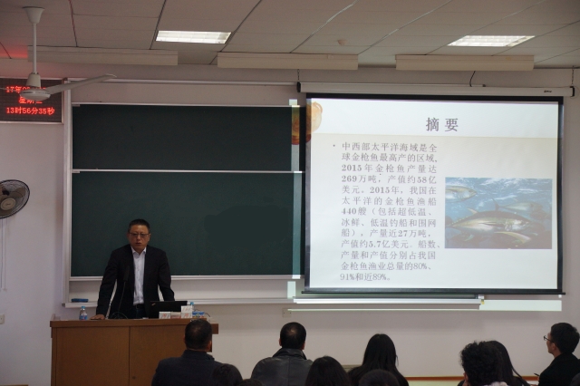 2017年3月15日下午,应国家远洋渔业工程技术研究中心、农业部大洋渔业开发重点实验室、农业部大洋渔业资源环境科学观测试验站、海洋科学学院以及上海市渔业经济研究会的联合邀请,中国远洋渔业协会高级顾问,上海海洋大学客座教授,原农业部渔业渔政管理局国际合作处处长刘小兵来校作“中西部太平洋金枪鱼渔业管理制度”专题报告。海洋科学学院教师、经管学院教师、海渔专业本科学生等共100余人参加报告会。