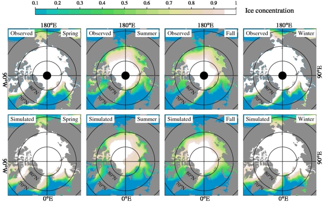 1北极海冰模型与观测数据分布特征比较