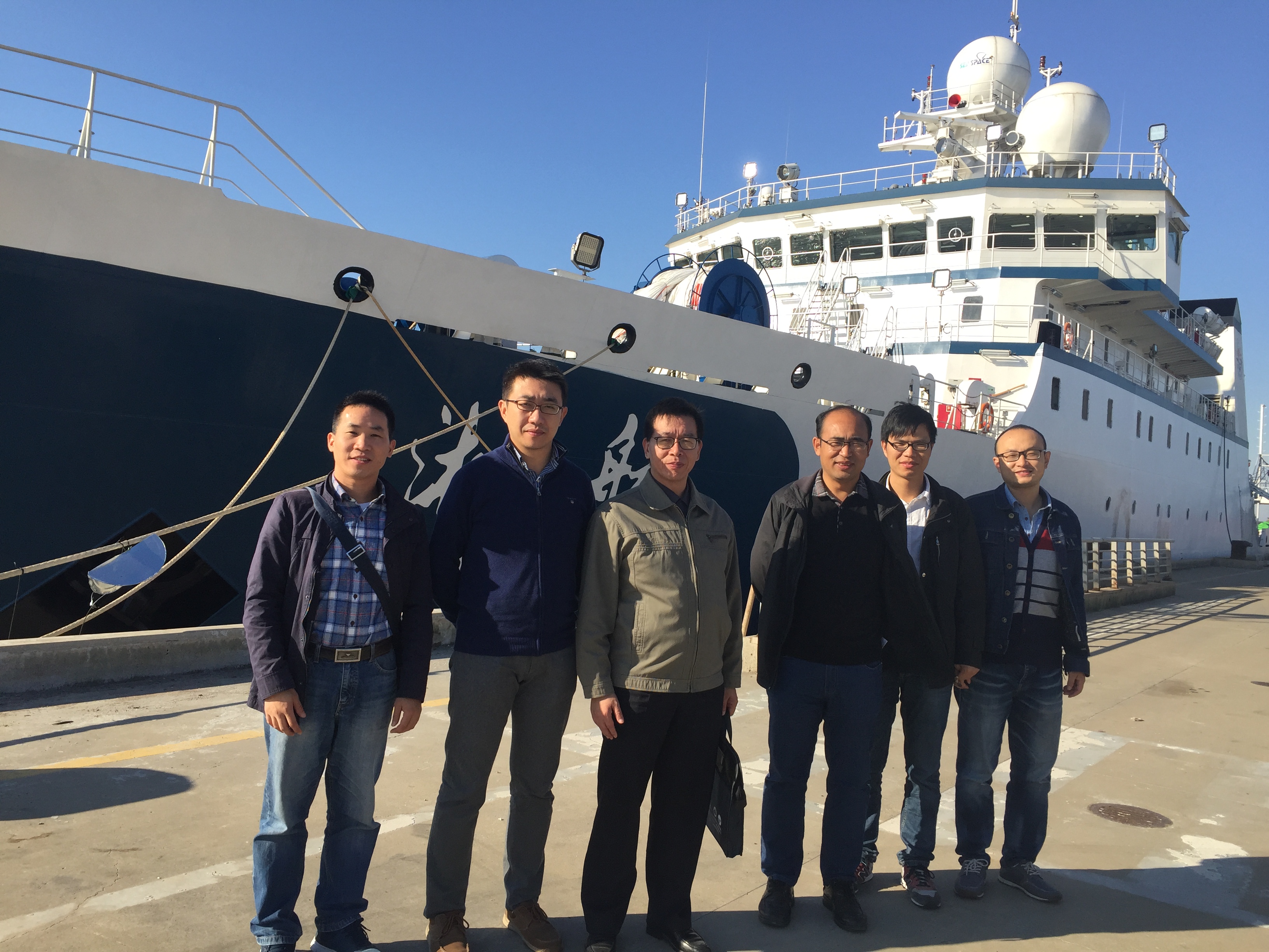 深渊教工党支部党员们在“淞航”号前合影