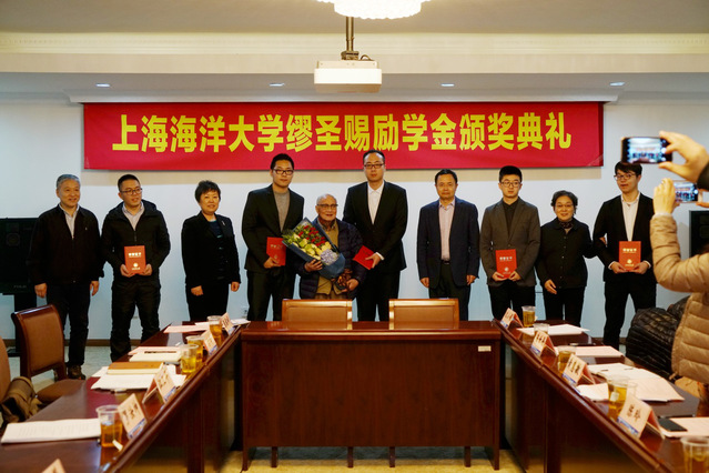 2018年1月5日下午,上海海洋大学缪圣赐励学金颁奖典礼在我校军工路校区隆重举行。励学金捐助人、我校1954届渔捞科专业校友缪圣赐先生、致公党上海市委领导邵志清、王再平,致公党杨浦区委领导李麟学、黄惠敏、崔世平、沈小娟、吴伟,上海海洋大学缪圣赐励学金理事会领导凤懋伦、陈玲,上海海洋大学校领导汪歙萍、罗汝坤、江卫平、王曜、沙锋、陈锦淘、张福祥,获奖学生以及远洋渔业学院学生代表出席了本次颁奖典礼。典礼由上海海洋大学缪圣赐励学金理事会副主任、上海海洋大学学生工作部部长罗汝坤主持。