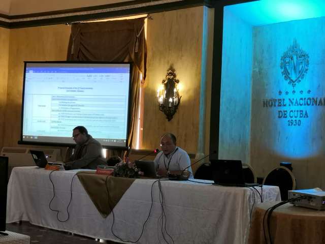 应南太平洋区域渔业渔业管理组织(South Pacific Regional Fisheries Management Organization,SPRFMO)邀请,经农业农业部渔业局指派、学校批准,海洋科学学院李纲、刘必林、王丛丛老师以及博士生许骆良作为为中国渔业科学家代表,参加了2019年10月5日至10月12日在古巴哈瓦那举行的SPRFMO第2次鱿鱼工作组会议以及第7次科学委员会议。来自中国、欧盟、澳大利亚、新西兰、韩国、俄罗斯、秘鲁、智利、瓦努阿图、厄瓜多尔、古巴、库克群岛、中国台湾等各SPRFMO成员以及有关国际组织代表作为观察员列席会议。