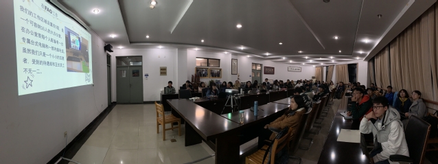 会议由海洋科学学院党委副书记王曜主持,活动邀请了缅因大学的留学生、FAO实习生、UCSD游学学生作为嘉宾,学院学生秘书李莹春老师也出席了本次活动。活动吸引了来自各个专业的近百名学生,有的同学在晚课后还特地赶来参加。