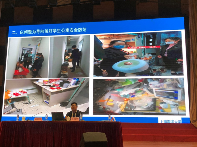 有问题,就会有防范措施。任和平通过对实际案例和公寓管理中切实存在的火灾隐患问题的剖析,喊出“安全无小事,责任大于天”的口号。接着从防火防盗、疫情防控、防寒防冻三方面详细介绍了上海海洋大学社区管理实施细则,立足做的管理有尺度、服务有温度。