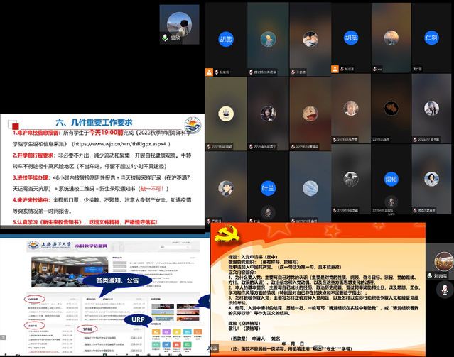 10月8日下午,学院开展新生入党启蒙线上教育活动。会议由学院组织员刘丙宝主持,全体新生参加。刘丙宝对新生开展党的基本知识和入党启蒙教育,教育学生以习近平新时代中国特色社会主义思想为指导,端正入党动机。同时介绍发展党员标准、入党条件、入党程序以及相关材料规范,引导学生不断增强责任感、使命感,永远跟党走,激发同学们的入党热情。