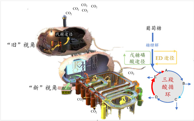 图1. 环境微生物生物地球化学碳循环的旧与新视角。ED途径指的是Entner-Doudoroff途径,又称2-酮-3-脱氧-6-磷酸葡糖酸途径(KDPG)。