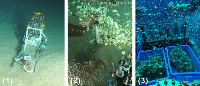 (1)布放自主研发的深海原位培养装置;(2)海底取样;(3)满载而归