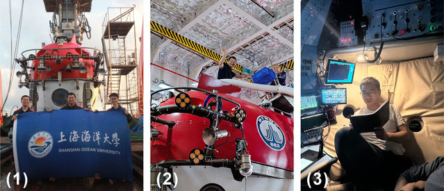 科学和技术深度融合的载人深潜,已成为引领新时代海洋科学的发展方向。上海海洋大学极端海洋过程与资源研究中心拥有一支优良的深潜队伍。中心主任陈多福教授早在2002年通过载人深潜器对墨西哥湾海底冷泉和水合物进行了实地考察,冯东教授是2013年“蛟龙”号首个实验性应用航次的首批下潜成员。本次科考,航次执行首席宫尚桂博士和核心成员王旭东博士加入深潜队伍,成为了新一代的深潜科学家。
