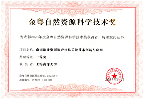 11月16日,广东省公布了2023年金粤自然科学技术奖获奖名单,由上海海洋大学作为主要完成单位,我校陆化杰副教授作为主要完成人的《南海渔业资源调查评估关键技术创新与应用》获得了金粤自然科学技术奖一等奖。