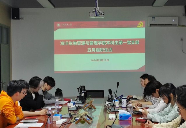 2024年5月16日,上海海洋大学海洋生物资源与管理学院本科生第一党支部于海资学院351会议室开展组织生活。本次组织生活由支部书记张漫秸主持,学院党委书记郑卫东及支部全体党员、发展对象、入党积极分子代表参加,旨在学习党纪,增强责任意识,提高政治站位。