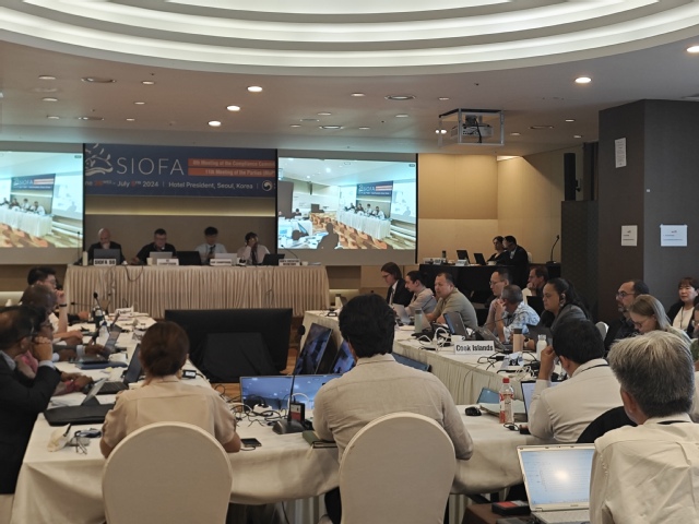 应南印度洋渔业协定(Southern Indian Ocean Fisheries Agreement, SIOFA)邀请,依据农业农村部渔业渔政管理局委派,海洋生物资源与管理学院方舟副教授、王家启讲师、俞骏研究生全程参加了于2024年7月1日至7月5日在韩国首尔举行的南印度洋渔业协定第11届缔约方大会(MoP11)。中国代表团由农业农村部渔业渔政管理局、外交部条法司及港澳台司、中国海警局南海分局、上海海洋大学、中国水产科学研究院东海水产研究所、中国水产科学研究院黄海水产研究所、中国远洋渔业协会派员组成。