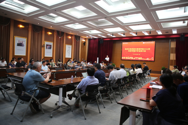 9月14日,海洋生物资源与管理学院在图文102会议室召开了2024年秋季学期开学全院教职工大会,通报暑期工作并部署新学期工作。学院全体教职工参会。会议由学院党委书记郑卫东主持。