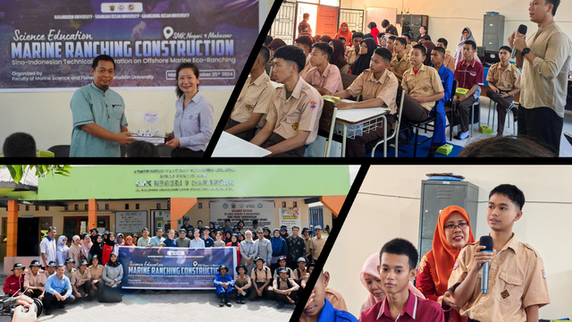 为了引导年轻一代树立正确的海洋观,增强保护海洋意识,中方团队还走进望加锡市SMK Negeri 9中学开展了一场海洋牧场科普教育活动,向当地高中生宣讲了保护海洋、促进海洋生物资源可持续发展的科普知识。上海海洋大学邹磊磊教授向学生们介绍了海洋的重要性及海洋面临的严峻挑战,呼吁开展海洋保护行动,并重点介绍了海洋牧场的概念及其对海洋保护的重要性。项目组的其他专家也积极参与问答环节的互动,详细讲解海洋牧场理念及其功能、中国海洋牧场建设经验等信息,极大地拓宽了学生们对海洋牧场技术的理解。