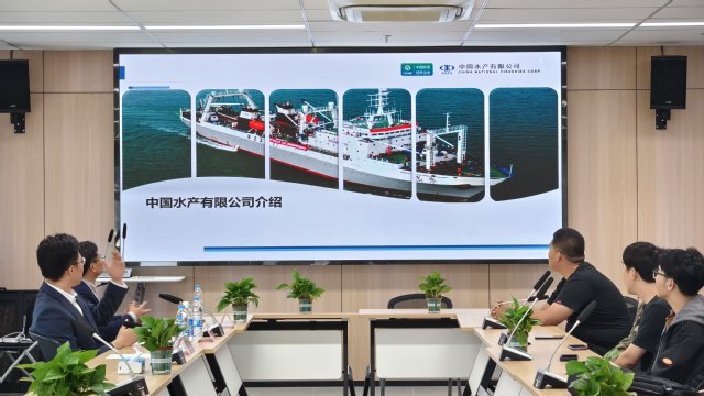 随后,谢程兰总经理详细介绍了中水集团的发展历程、企业文化及金枪鱼围网项目部的概况。他提到,中水集团作为中国远洋渔业的领军企业,一直致力于推动远洋渔业事业的可持续发展,并在金枪鱼捕捞领域取得了显著成就。