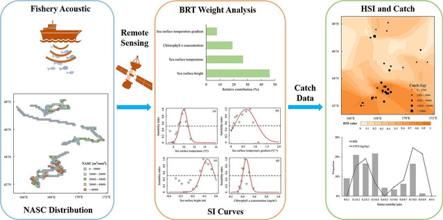 近日,上海海洋大学远洋渔业科学与技术创新团队在商用探鱼仪渔业声学数据采集与应用方面取得的最新研究成果“Reimagining habitat suitability modeling for Pacific saury (Cololabis saira) in the Northwest Pacific Ocean through acoustic data analysis from fishing vessels”,发表在生态学领域期刊《Ecological Informatics》。海洋生物资源与管理学院博士生薛铭华为第一作者,陈新军教授、童剑锋副教授为共同通讯作者。该研究得到了国家重点研发计划的支持。