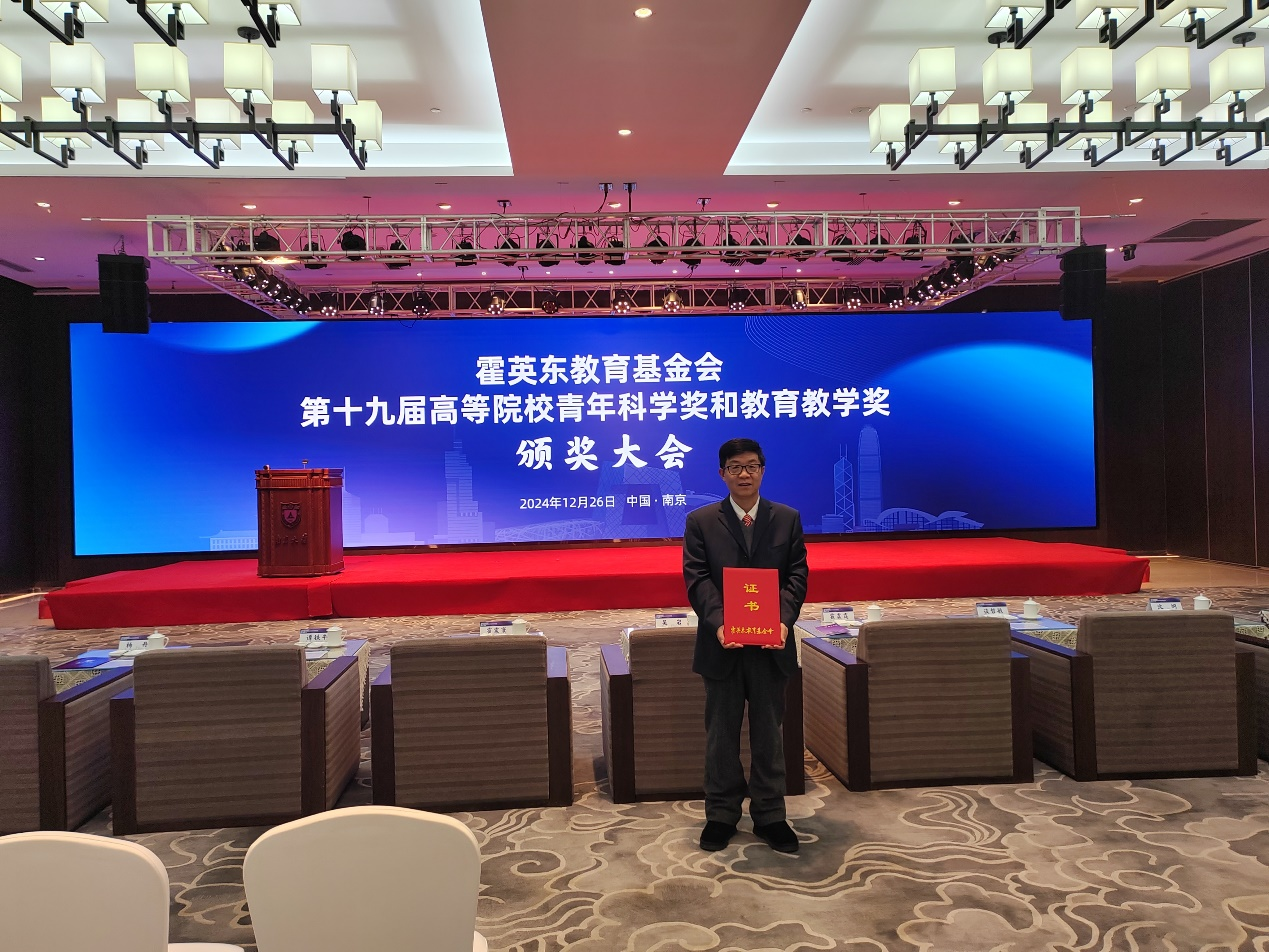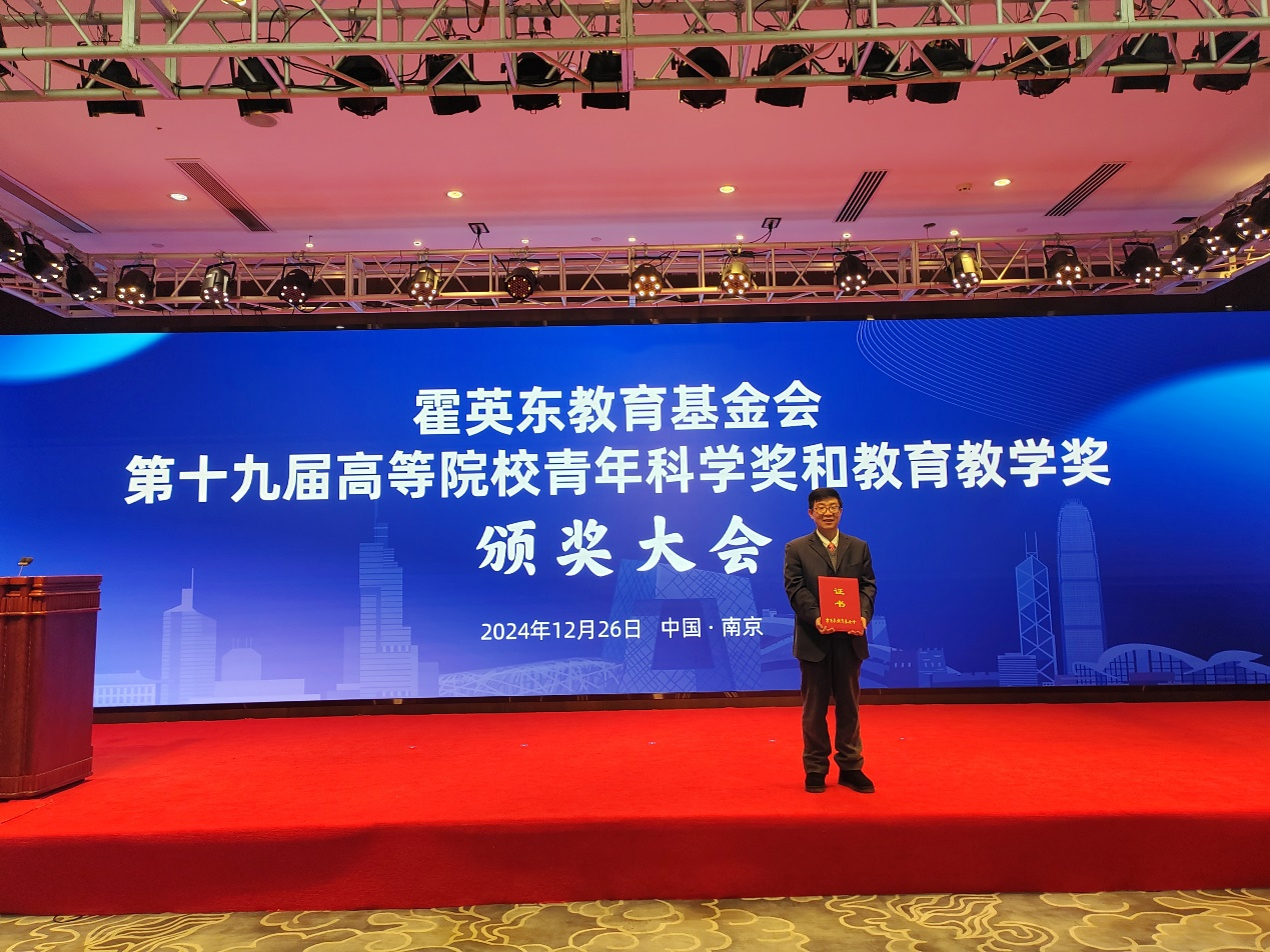 12月26日下午,霍英东教育基金会第十九届高等院校青年科学奖和教育教学奖颁奖大会在南京举行。教育部副部长吴岩,南京大学党委书记谭铁牛、校长谈哲敏,霍英东教育基金会理事长霍震寰、副理事长霍震霆等出席大会,并为获奖教师代表颁奖。教育部港澳台事务办公室主任杨丹主持大会。我校陈新军教授荣获霍英东教育基金会高等院校教育教学奖二等奖。
