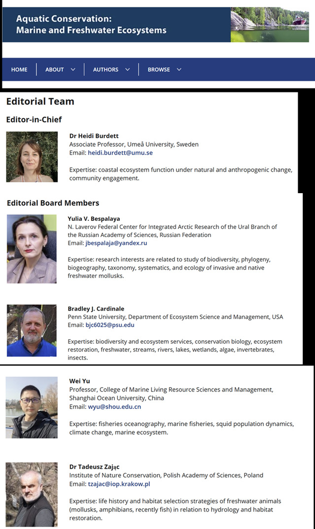 近期,上海海洋大学海洋生物资源与管理学院余为研究员受Wiley Online Library旗下《Aquatic Conservation: Marine and Freshwater Ecosystems》(水生保护:海洋和淡水生态系统)期刊邀请,担任该刊编委。《Aquatic Conservation: Marine and Freshwater Ecosystems》期刊是生态学领域权威期刊,创刊于1991年,每年出版24期。该期刊2023年影响因子为2.5,JCR和中科院小类分区在海洋与淡水生物学领域均属于一区。期刊致力于发表所有水生生态系统(包括淡水、咸淡水和海洋生态系统)保护的高水平研究成果。通过搭建跨系统、跨学科的交流平台,为探讨各类水生环境保护研究提供了重要载体。