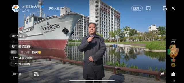 上海海洋大学党委常委、海洋生物资源与管理学院党委书记郑卫东,奉贤区金汇镇党群工作办公室四级主任科员闵晓燕,以及中水集团远洋股份有限公司、深圳联成远洋渔业有限公司、杨浦区缘聚青年社工师事务所等企业代表,学院教师代表、学生代表参加直播。