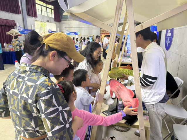 本次展览不仅是技术展示,更是一场生动的科普课堂。团队设置了趣味互动环节,邀请小朋友现场尝试,将“金鳞”放置水中,观察其形态,然后通过简单通俗的讲解,介绍了仿生机器人的原理。家长们表示,这样的活动既让孩子亲近科学,又能在玩乐中学习:“平时孩子对机器人感兴趣,但又总觉得离生活很远,这次能亲手操作、亲眼看到科技如何‘模仿自然’,特别有意义。”
