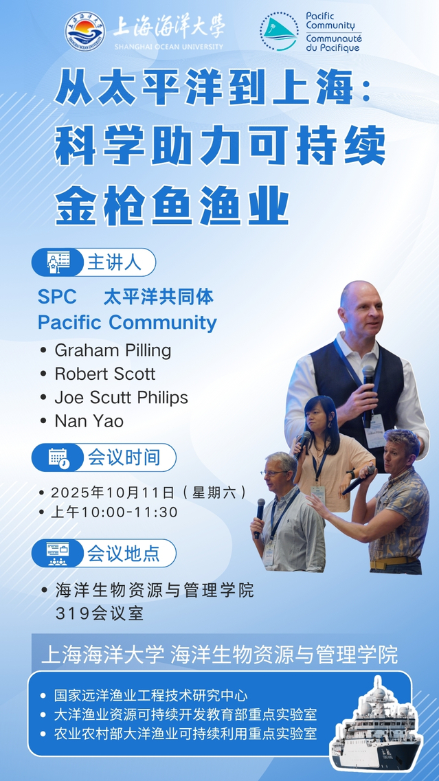 A special seminar co-hosted by the Pacific Community (SPC) and Shanghai Ocean University. This seminar will delve into how scientific approaches can drive the sustainable development of tuna fisheries in the Pacific region and globally.