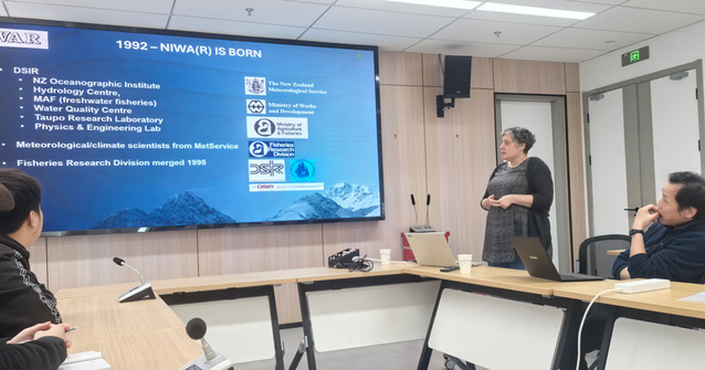 迪瓦恩博士介绍了NIWA在海洋与渔业、气候变化及南极研究领域的长期科研积累,并强调长期海洋观测数据在理解气候变化与生态系统响应中的关键作用。过去几十年间,新西兰科研团队在全球部署了大量ARGO浮标,为研究海洋温盐结构、环流变化及其对渔业资源的影响提供了重要数据支撑。同时,ESNZ通过广泛的国际合作网络,将观测数据与生态系统模型相结合,为渔业资源可持续管理和海洋空间规划提供科学依据。
