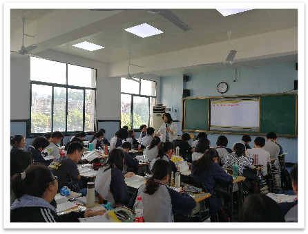 英语课上,老师讲授的内容主要分为两个部分,一是听力,听完听力后,老师核对答案,并给大家重播听力,帮助大家分析并准确找到错题的正确答案;二是填词,在填词联系之前,老师提醒大家需要注意的细节问题,邀请同学上台展示自己的答案,并对错误答案进行了详细的分析。课堂氛围十分活跃,老师和同学们相处融洽。数学课上,老师首先讲解知识要点,接着详细讲解课本习题,将知识点融会贯通。之后,举一反三,讲解贴近高考的题目,并说明其与课堂例题的相似性。最后,讲解可反向逆推的题目。老师将一道大题不断地解析,分解成多个小问题,使之具体化,把实际问题变成数学问题。其中也会借用多媒体工具以及画图板书使学生更形象地了解问题。语文课上,老师对前一天的作业情况进行了说明,随后讲解习题,老师通过提问,一步步引导学生得出正确答案并提醒同学们注意答题规范以及正确的格式,在讲解过程中引经据典,将新旧知识点结合起来,让学生对所学内容有更好的掌握,讲解完习题后,对课文内容进行回顾和总结,和同学们积极互动,加深同学们对课文的理解,实现情感上的升华。