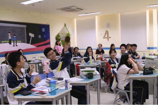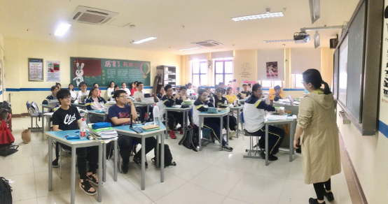 同学们受到了六中老师的热烈欢迎。在班会开始之前,朱老师先带领大家参观了国际部的形体室、国学馆、健身房和休息室等多处设施。然后,负责国际部德育工作的袁老师就德育工作的两个方面——日常管理和教学管理——与同学们进行了交流。