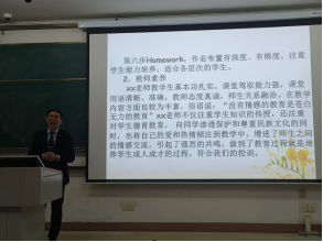 然后,他为同学们展示了几组评课稿。第一组以阅读课举例,从读前、读中和读后几个环节展开评述,并融入教师素养提出综合的教学建议。第二组评课稿从教学理念、授课方法、课堂效果等方面展开,使同学们学会了多角度评课。第三组将评课内容分为值得借鉴和值得探讨两部分,简明扼要地评述了一堂课。
