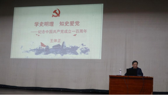 党委宣传部退休教授王体正为外院全体学生作了题为《学史明理,知史爱党》的首场宣讲报告。报告中,王体正教授回顾了中国共产党成立和发展的历史以及新中国成立后党的建设策略,让同学们进一步了解了中国共产党是一个敢于斗争、敢于胜利的党,是一个善谋建设,善于建设的党,是一个勇于创造、勇于创新的党,是一个为了人民,服务人民的党。