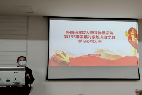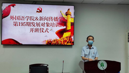 2022年5月7日上午8:30,外国语学院&新闻传播学院第195期发展对象培训班开学典礼在逸夫人文楼A2014室顺利举行,外国语学院党委书记刘建伟、新闻传播学院党委书记王春喜、外国语学院组织员黎凤莲、新闻传播学院组织员张耀强,以及两院第195期发展对象学员参加开班仪式。