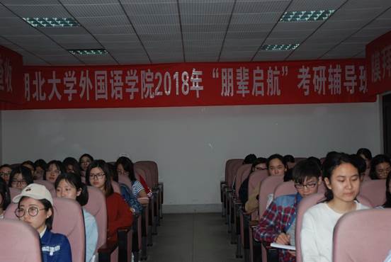 (文/李苏艾 记者/姚丽欣、成季媛、程思、李青树)湖北大学外国语学院党委组织的“朋辈启航”考研辅导班系列活动在逸夫人文楼A2014顺利开展。此次活动分为四场,分别于2018年4月13日、16日、18日和20日晚上六点半举行。出席本次活动的有外国语学院党委书记林二友和外国语学院教授杨元刚,参与分享的主讲人有周爽、胡缘、周亮、何垚、徐爽、章雪妮、胡雅丽和龚颖等。此次活动旨在帮助2019届考研党顺利备考,整个活动内容丰富,准备考研的学生们可谓收获匪浅。