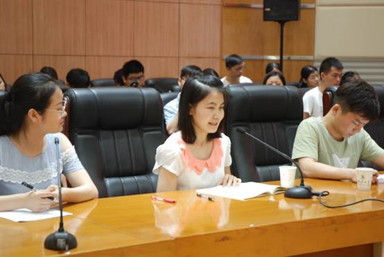 1501班长刘丹作为代表,提出了同学就考研和保研等方面存在的困惑和疑问。同学们提到的问题包括外国语学院保研相关政策、研究生支教团具体信息、近年英语专业毕业生就业情况、暑假期间图书馆提供学习场所的相关安排和关于实习与考研时间冲突问题等。湖北大学教务处副处长李中伟,研究院副部长叶秀娟,外国语学院党委副书记占婧就以上问题分别做出解答。这些问题无不显示着15级学生对考研的迫切心态和认真态度,而老师们详细准确的回答,也能帮助他们制定周密有效的考研计划。