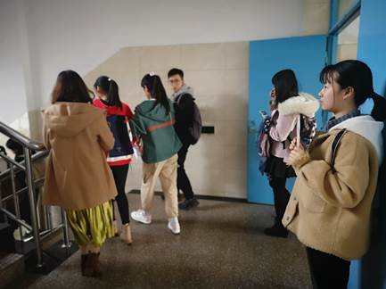 3月11日下午,外国语学院志愿者协会的成员在学生上下楼期间于教四开展了第一次以"维护秩序,减少拥堵"为主题的雷锋月特色活动—楼道秩序维持。