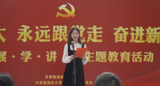 为深入学习宣传贯彻党的二十大精神,用党的科学理论武装青年,用党的初心使命感召青年,由湖北大学团委主办、外国语学院团委承办的“学习二十大·永远跟党走·奋进新征程”青年展·学·讲·研主题教育活动顺利举行。
