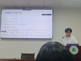 现已被荆门市第一中学录用的汤毅同学,用幽默风趣的语言将他求职时笔试、面试的形式及答辩的经验分享给了与会同学。