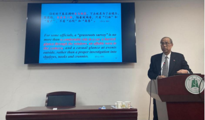 为深入贯彻落实教育部《高等学校课程思政建设指导纲要》,进一步落实立德树人的根本任务,把思想政治教育贯穿人才培养体系,深入推进学院课程思政建设,11月19日,学院特邀省教育专家、湖北省教育厅原副巡视员孙望安,为学院师生开展题为“读时政经典文献,学汉英翻译技巧——学习《习近平谈治国理政》英文版的心得”的学术讲座。本次讲座在逸夫人文楼A2014举行,由外国语学院副院长杨小彬教授主持。