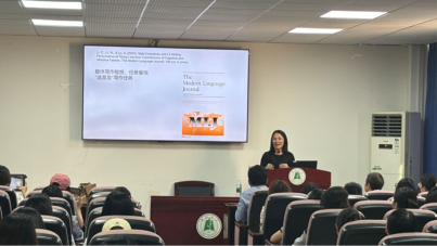 李老师主要从个人二语情绪研究回顾、教研结合案例、未来展望和论文写作与发表等方面介绍了有关二语情绪在外语学习中的前沿研究。李老师的讲座风格轻松自然,她结合自身教学和研究经验为师生详细介绍了二语情绪的研究内容和研究方法,并积极回答了师生的提问。