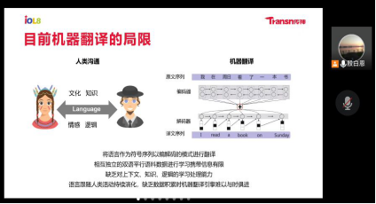 随着科学技术发展,特别是计算机的发展,机器翻译共分为基于规则的机器翻译、基于实例的机器翻译、基于统计的机器翻译和基于神经网络的机器翻译。殷白恩老师指出,机器翻译还有很大的发展空间。其次,人机共译落地的过程主要有六大步骤,而目前AI技术发展处于能够代替人类学习、初步感知人类行为的阶段,比如学习的机器人小度、苹果的Siri。每一次AI发展都很艰难,需要海量数据的积累。