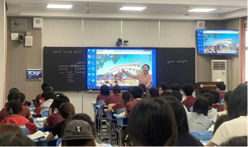 在课后研讨环节,赵爽老师向大家讲解教学设计的思路和过程,粮道街中学八年级英语组备课组长傅霖寰老师与湖北大学张睿老师对赵爽老师的示范课进行了专业点评。傅老师从一线教师角度出发,点明英语教学应贯彻好“用英语讲好中国故事”的新要求;张老师高度评价了本节课在教学设计、技术融合和情感教育等方面的创新实践。