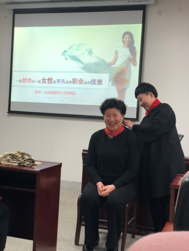 讲座一开始,吕燕老师以自身生活、工作经历向教师讲述了礼仪的重要性。她表示,礼仪是做人的标准,做事的规矩,讲礼仪可以让朋友越来越广家庭越来越和谐,生活越来越幸福,工作越来越顺心,个人越来越有魅力。    吕老师从关注仪表、修饰仪容、重视着装、表情运用等方面详细阐述了塑造良好教师形象的方法。她特别提到,着装要符合身份、区分场合。作为女教师穿衣应该简洁干练,富有朝气,工作时素雅,聚会时张扬,约会时温馨。接着她现场演示了如何用一条丝巾去体现女性的优雅,详细讲解了钻石结、平结、玫瑰花结等丝巾结的系法。老师们积极参与,交流互动,现场气氛轻松愉悦