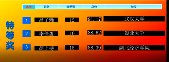 经过评委评分,决赛评选出特等奖3名、一等奖6名、二等奖11名。我校外国语学院2020级翻译专业李佳盈同学凭借出色的口语表达及思辨能力荣获特等奖,将与其他两名特等奖选手一起代表湖北省参加全国总决赛。