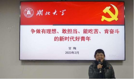 2月23日,外国语学院举行青年师生学习贯彻党的二十大精神主题报告会,学校党的二十大宣讲团成员,学生工作部(处)部(处)长、人民武装部部长甘珣以《争做有理想、敢担当、能吃苦、肯奋斗的新时代好青年》为题,向青年师生宣讲党的二十大精神。学院党委副书记占婧主持会议。