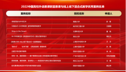 4月14日,第五届中国高校外语慕课联盟大会暨第二届虚拟仿真实验教学创新联盟外国语言文学类专业工作委员会大会在深圳召开。会上,湖北大学外国语学院周红兵副教授提交的“M-FIRE模式的《英语演讲艺术》混合式教学设计”与王珺珺副教授提交的“教赛研一体、产出为导向---《英语演讲与辩论》混合式教学案例”当选为2022中国高校外语慕课联盟慕课与线上线下混合式教学优秀案例。